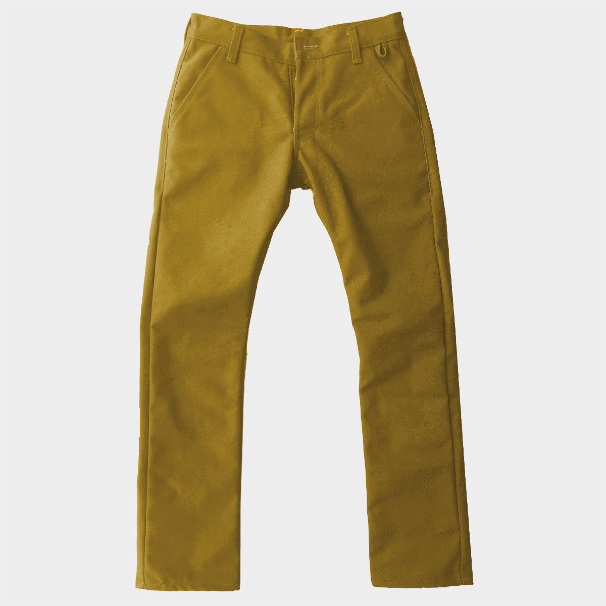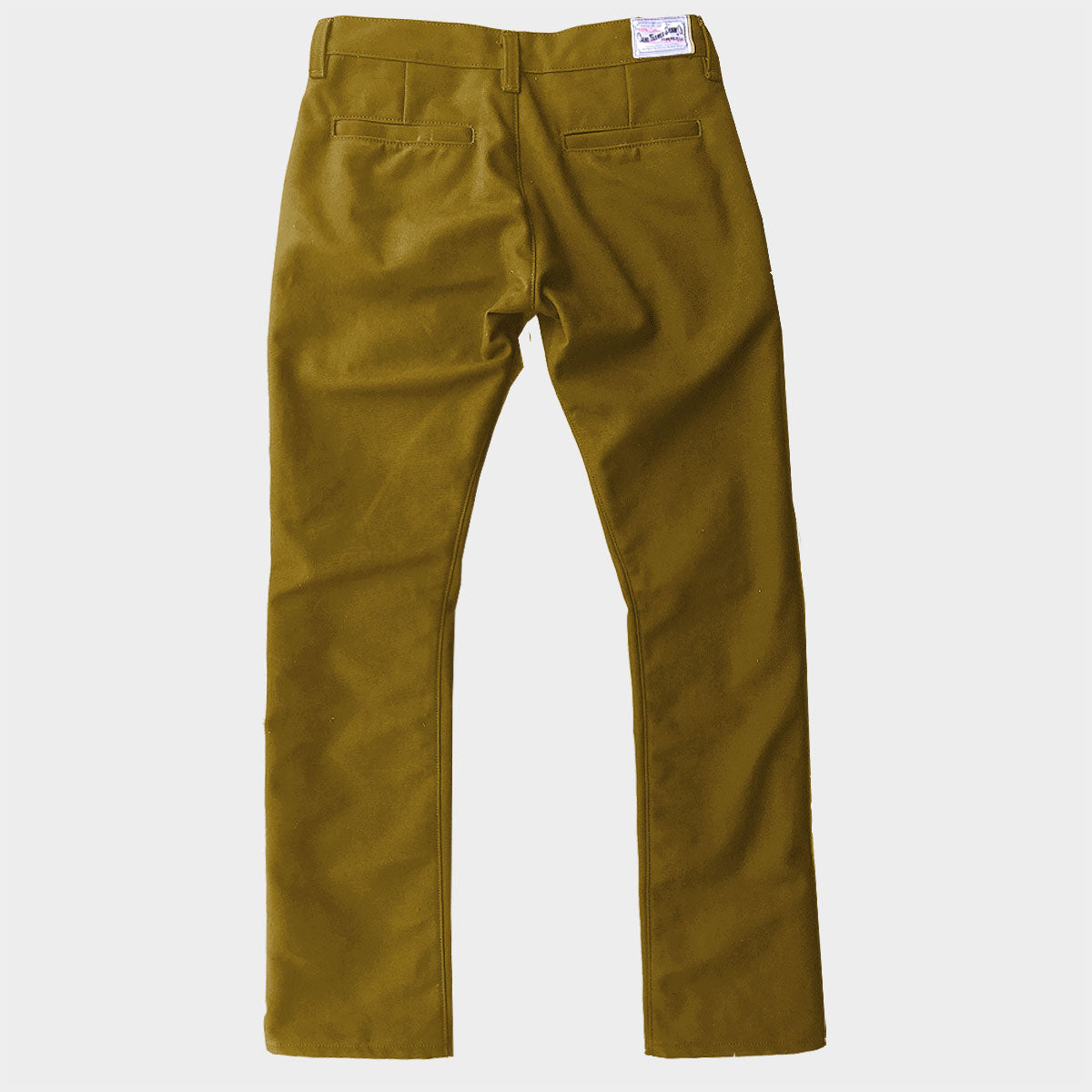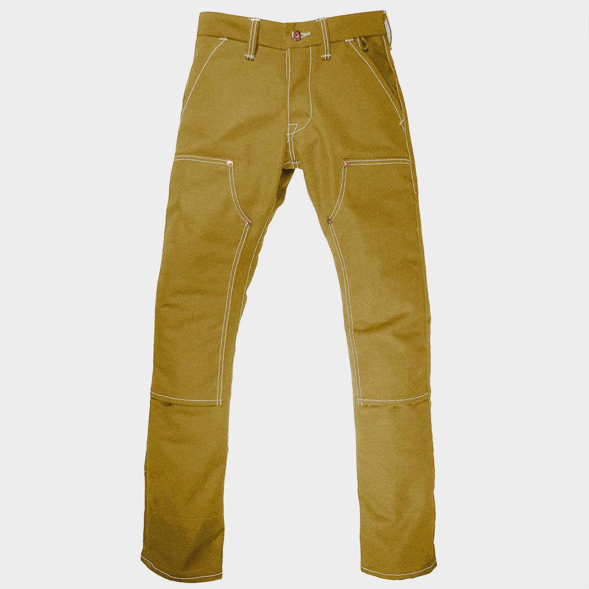 The Duck Canvas we use has to be an America Classic. To us that means it is an America staple from the start and ages gracefully. This 18oz has a plain weave and is a very solid fabric. This fabric is the starting point for all American workwear. It is Sanforized, and there will be some stretch and shrinkage, but not as much as a denim weave The base color is Lite Ochre. It’s truly an America Classic.